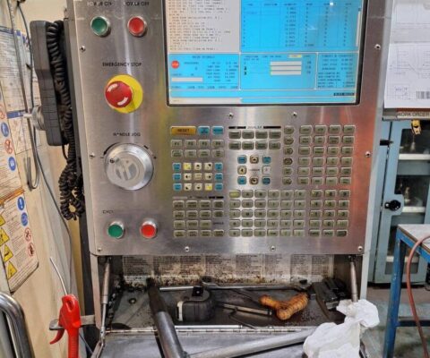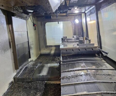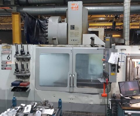 64″ x 28″ table, 64″- x, 32″- y, 30″- z, BT 50 taper, 7500 rpm (2- speed gearbox), 30 HP, 4th axis ready. c/w sidemount toolchanger (30+ 1). 2008.