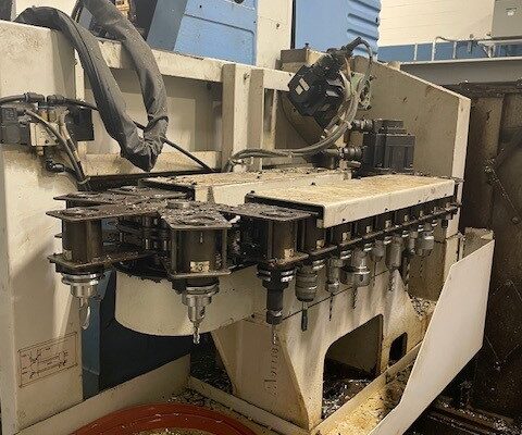 57 1/2″ x 20″ table, 44″- x, 20″- y, 20″- z, CAT 40, 10000 rpm, 20 HP., 30 ATC. c/w Mazatrol Fusion- 640M control. 2000.